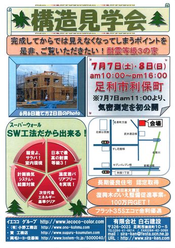 7月7日(土)、8日(日)に開催いたしました構造見学会では、