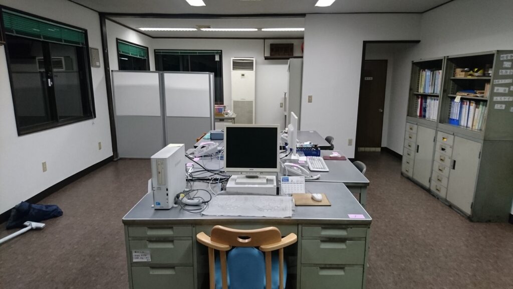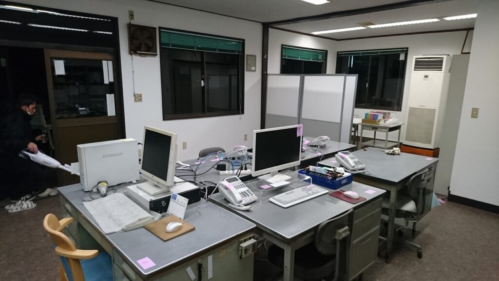 金属加工会社事務所のリフォームです。事務所と工場をつなぐ動線は会社の動脈であり静脈です。その動きがハッキリとわかる床の傷み具合には耐久性が求められる。特に油に対して考慮・・・