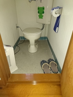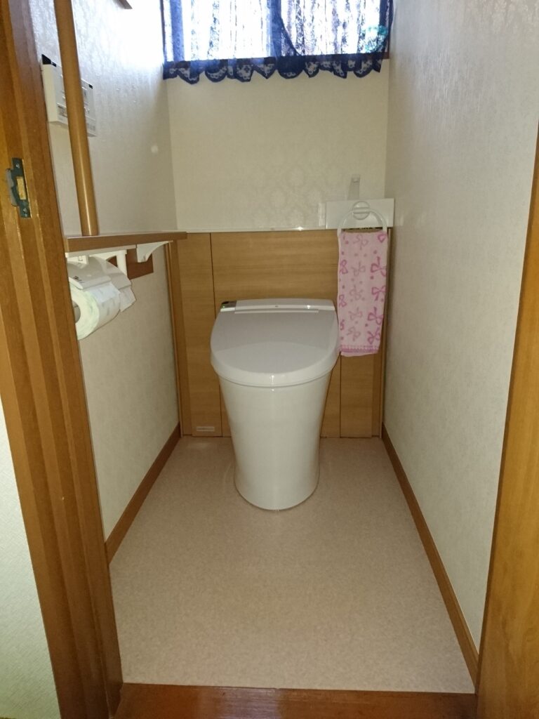 38年間使った便器にはウォシュレットが無く全体が黄ばみ使用感たっぷりでした。トイレは手すり、ウォシュレット、電気式ヒーターを付け、入口でまたいでいた6cm上がりの敷居はトイレの床を上げる事でつまずきを軽減、安心安全なリフォームを心掛けました