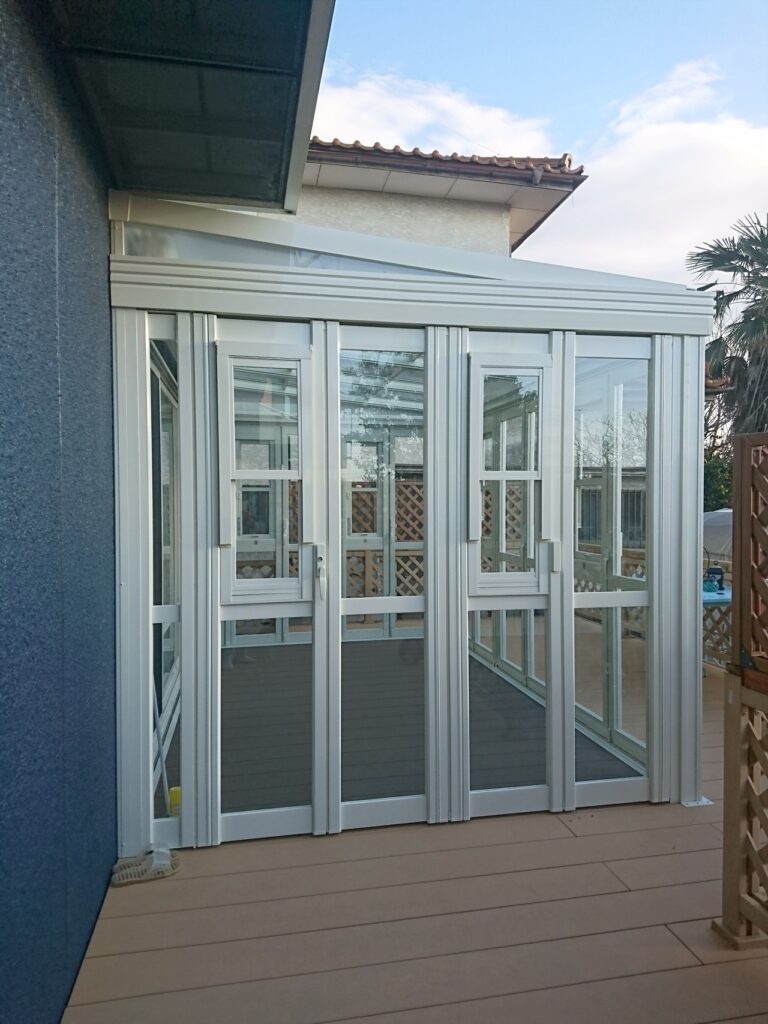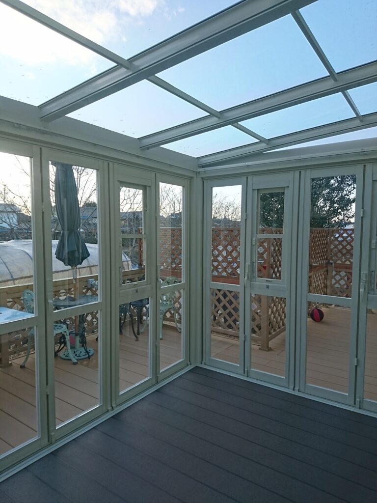 サンルーム「暖蘭物語」を採用W3.8m×奥行き2.4mのビックサイズです。