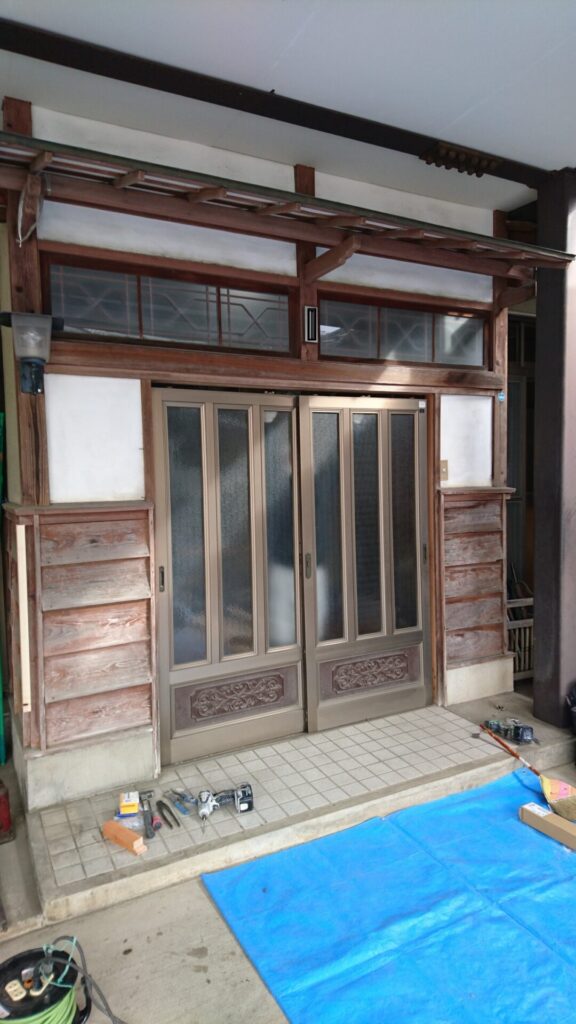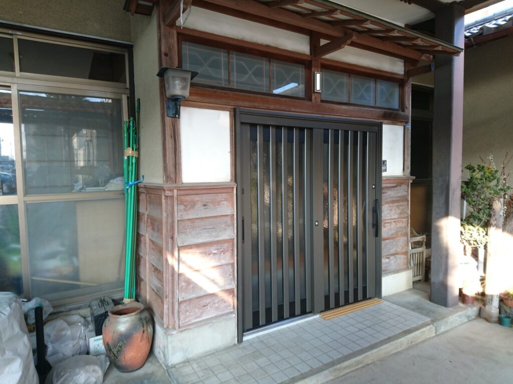 ◆玄関引戸サッシ入替工事(リシェント工事)縦通しデザインでスッキリ明るい玄関になり、大型ハンドルを握ることで開け閉めしやすくカラダの支えにもなり安心安全に・・・
