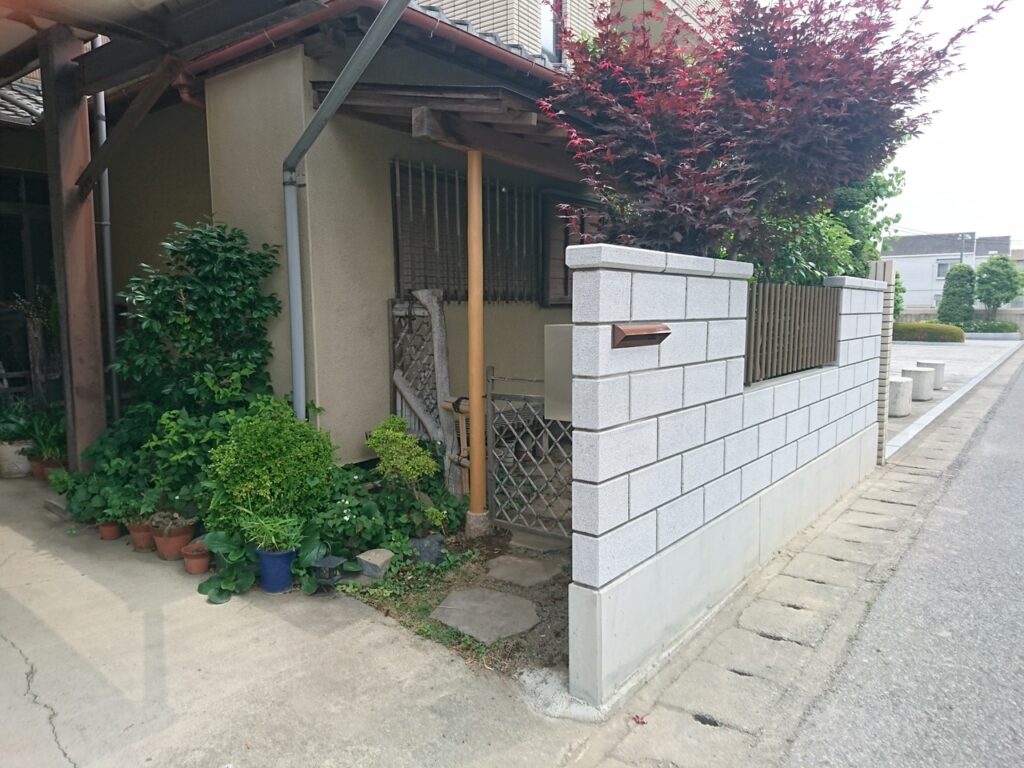 ◆化粧ブロック工事左側が沈下し、塀に大きな亀裂がでる