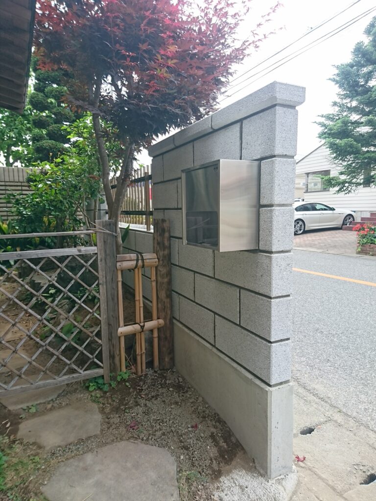 ◆化粧ブロック工事左側が沈下し、塀に大きな亀裂がでる