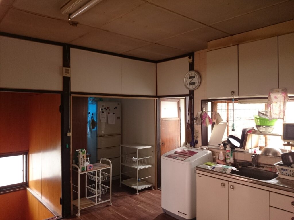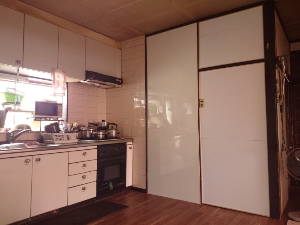 以前の浴室+給湯室がキッチンの一部として冷蔵庫を置き使い勝手のいいパントリーに(正面)