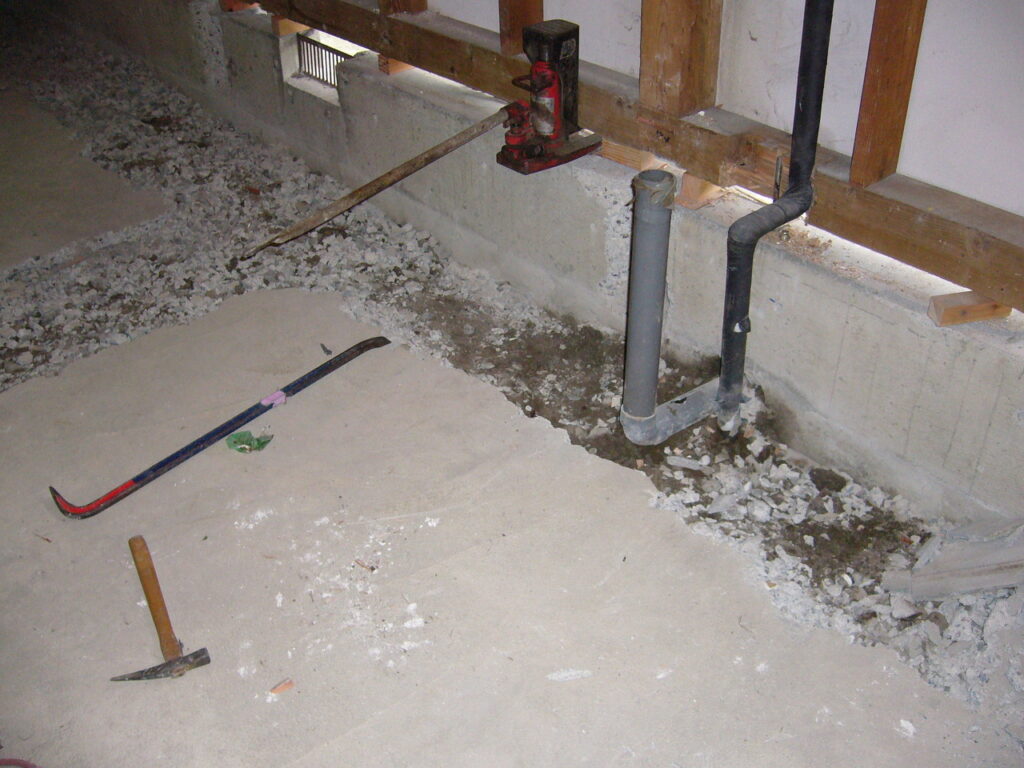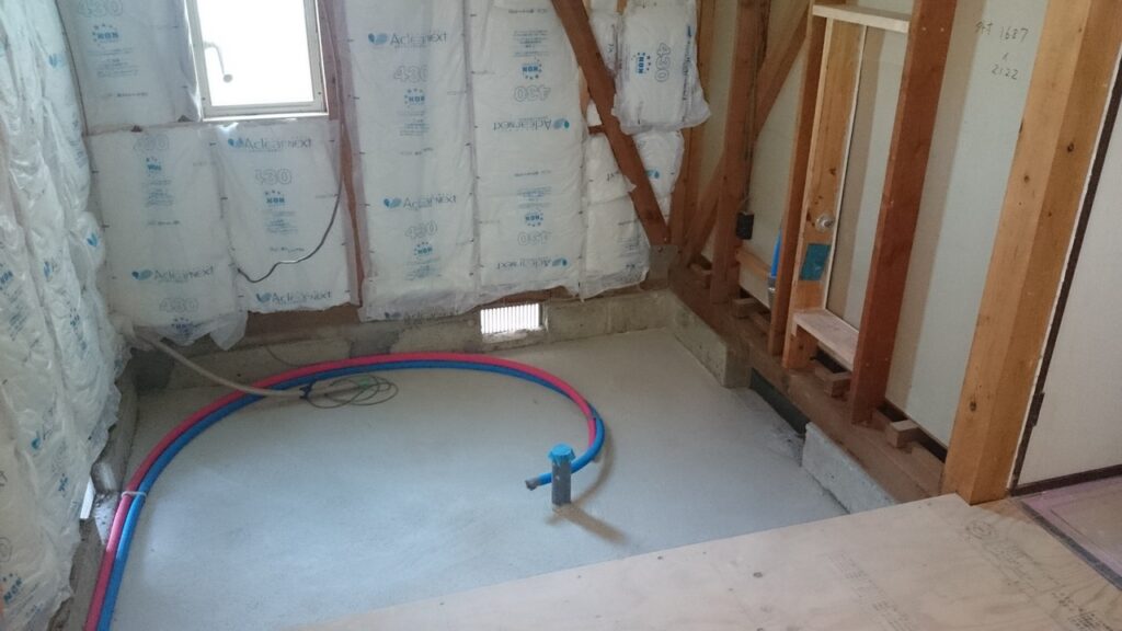 地盤沈下したところを正常に戻し、ゆがみの無い平らな床に。
