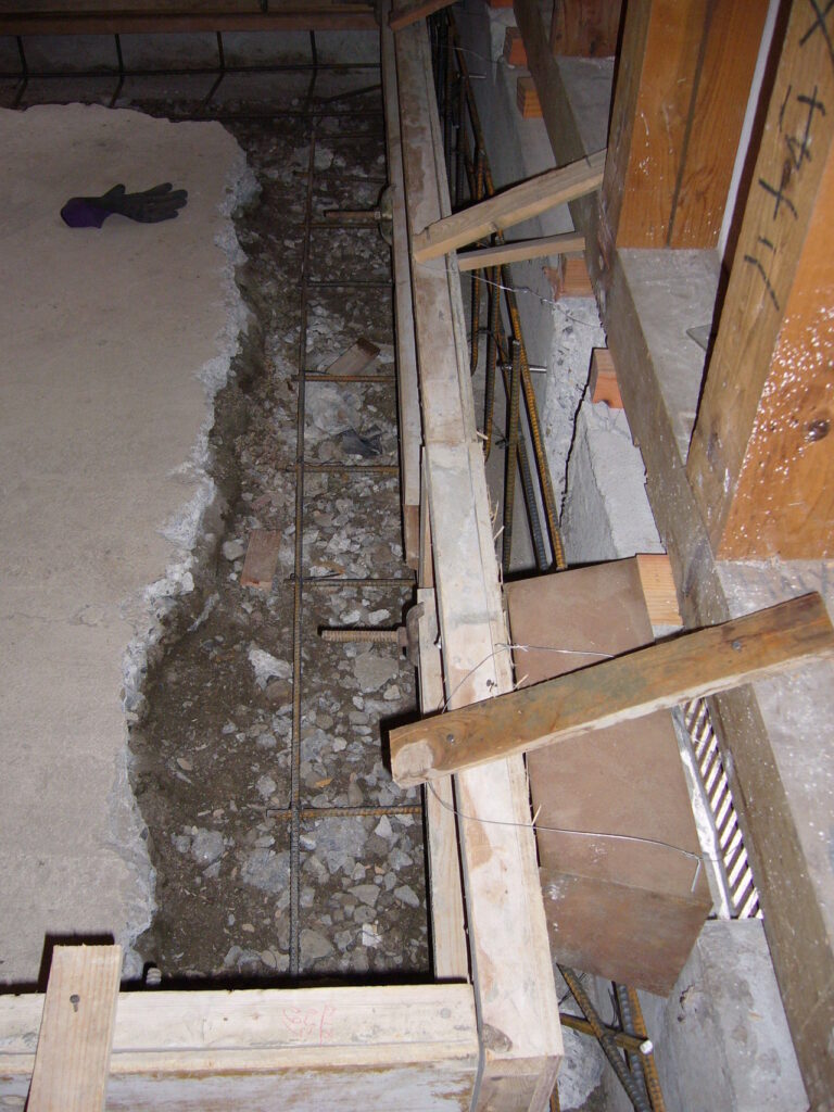 内側へ新規基礎を抱き合わせ正常な高さまでコンクリート打設