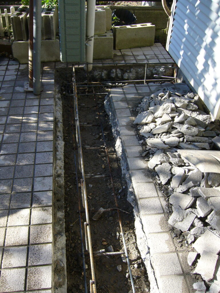 補強基礎を内側に・・・そのためのベースはしっかりと突き固める