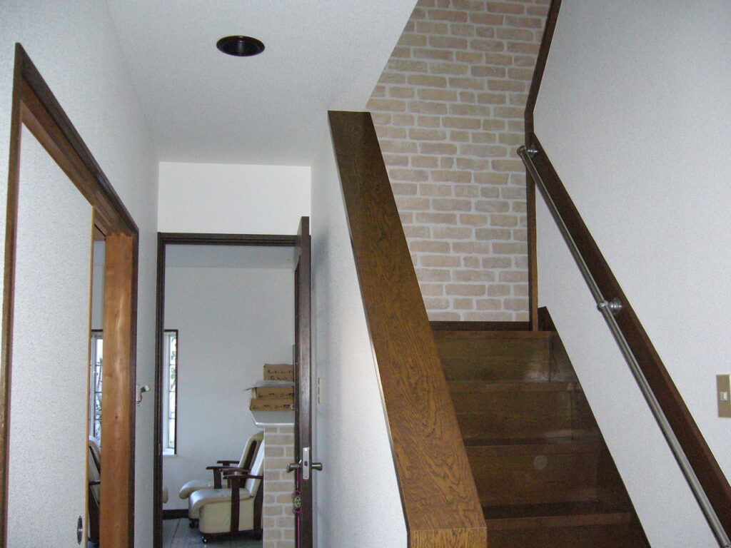 玄関ホール吹抜けは既存下地を生かし床はフローリング材の重ね貼り壁天井はクロス貼り替えです。
