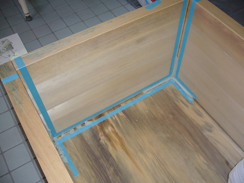 角周辺を中心に3方向に充填。粘りが強く、使用後のヘラがベトベトでシンナーで綺麗に落としました。 -