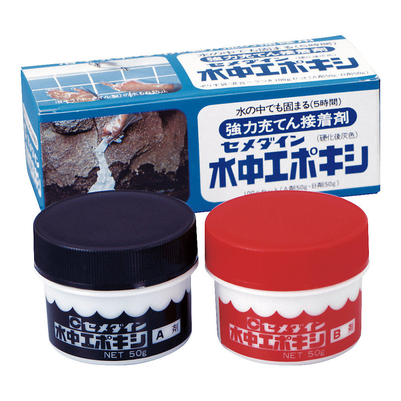 インターネットで調べたところ、水中エポキシに辿り着きました。固まる時間が速く、接着剤が人体に影響が無い事で使用することにしました。