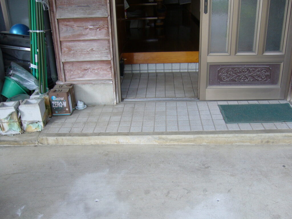 施工写真玄関先の段差48cmを軽量で簡単に設置できるアルミ材スロープ。