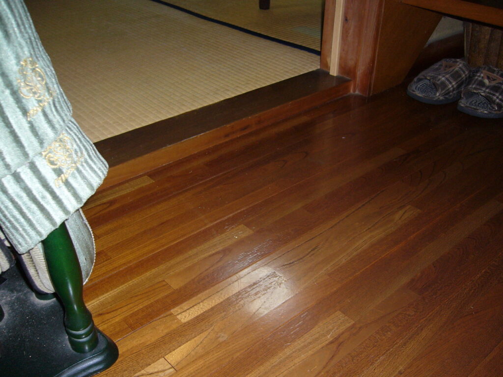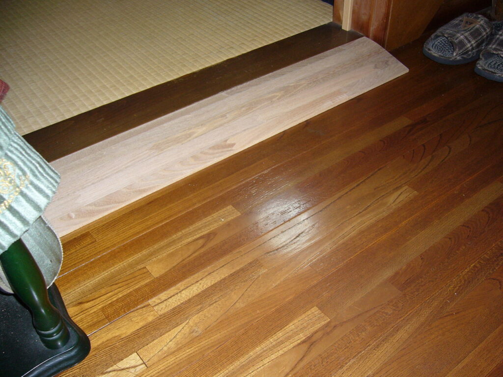 廊下から和室入口の3cmの段差解消に木製スロープを