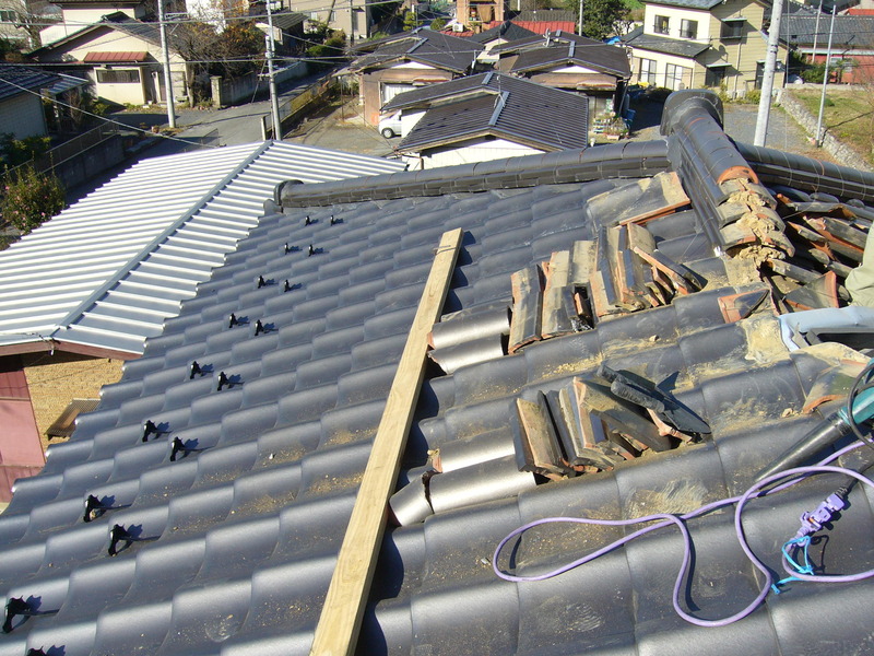 棟瓦の一部積み替え -