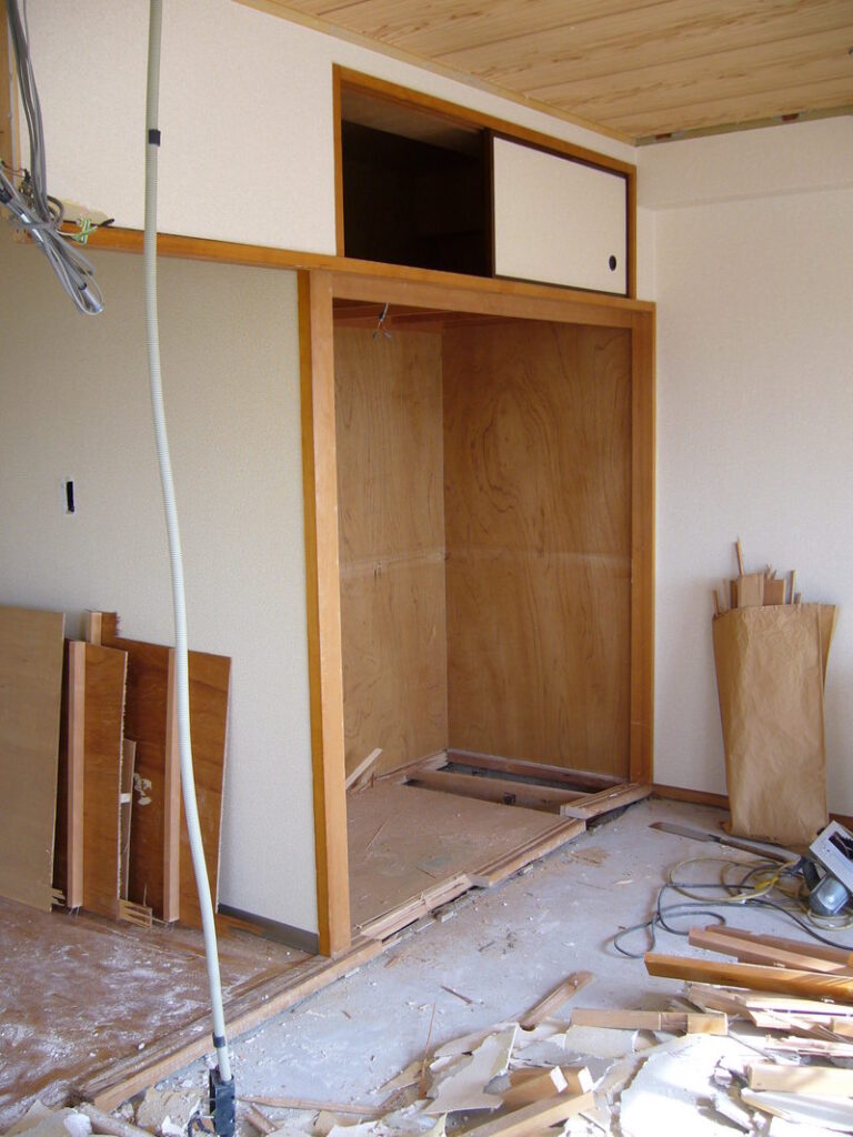 解体中天袋も撤去し、クローゼット折戸高さ2mをつけます。