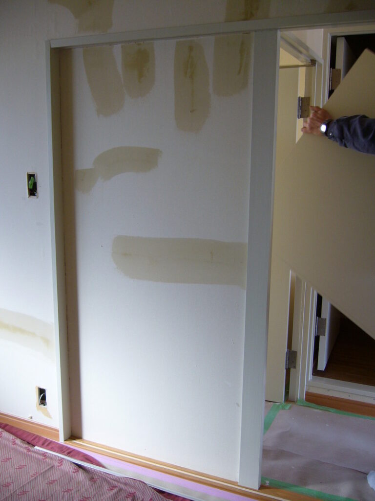 和室から洋室に:入口の片引戸も新調(滑りの良いVレール戸車) -