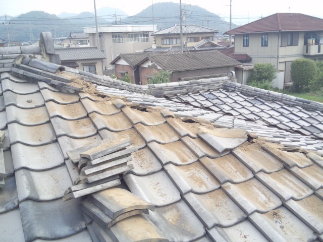 震災のダメージか?屋根瓦の棟積み直し:栃木県足利市
