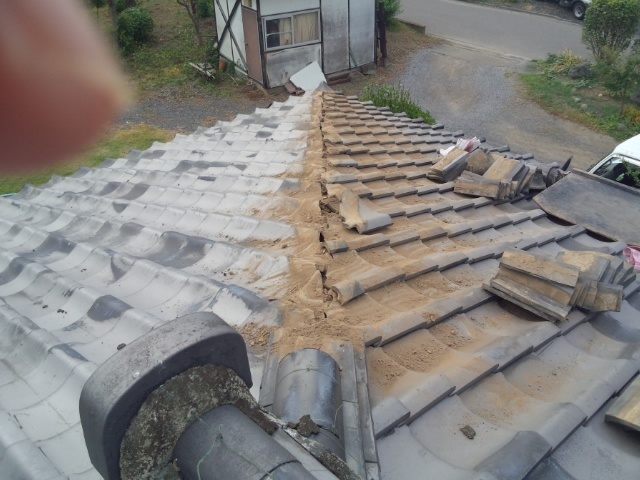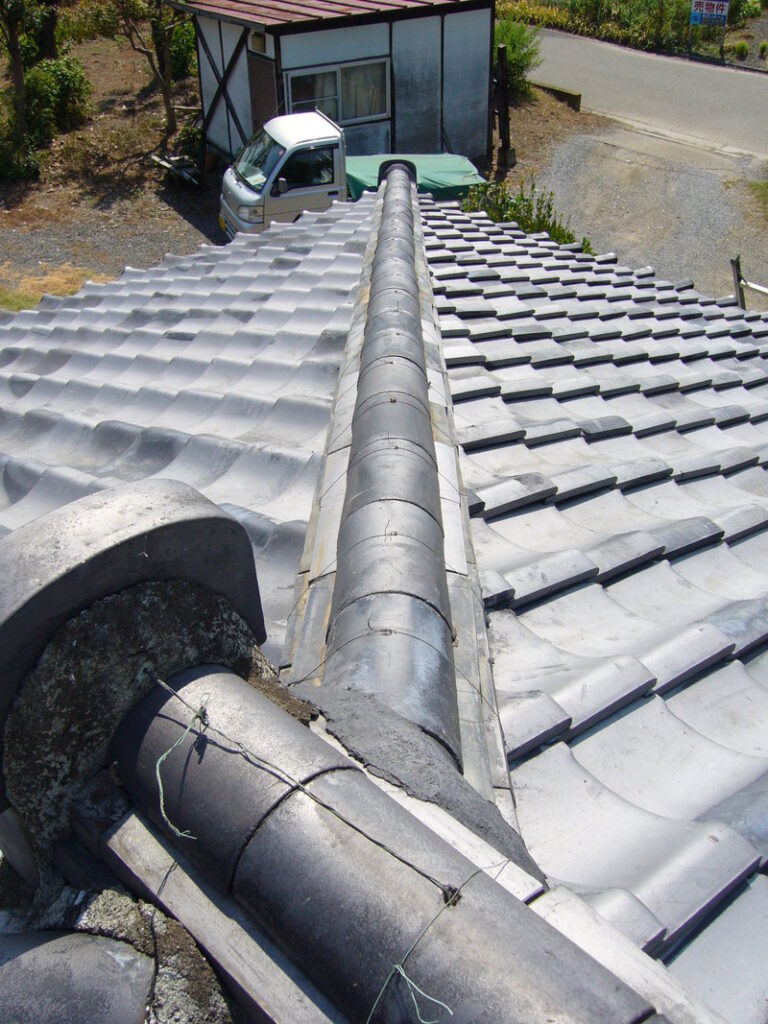 土を使わない工法です。南蛮(練った漆喰)を敷き詰め、棟瓦を積み直した。