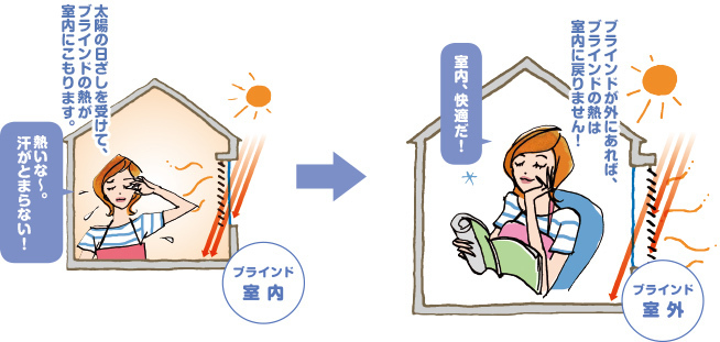 今まで室内ブラインドでした。室外での日射カットは効果大!