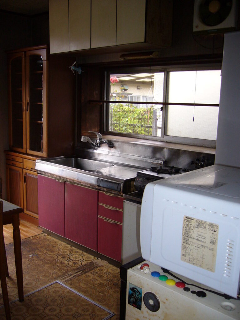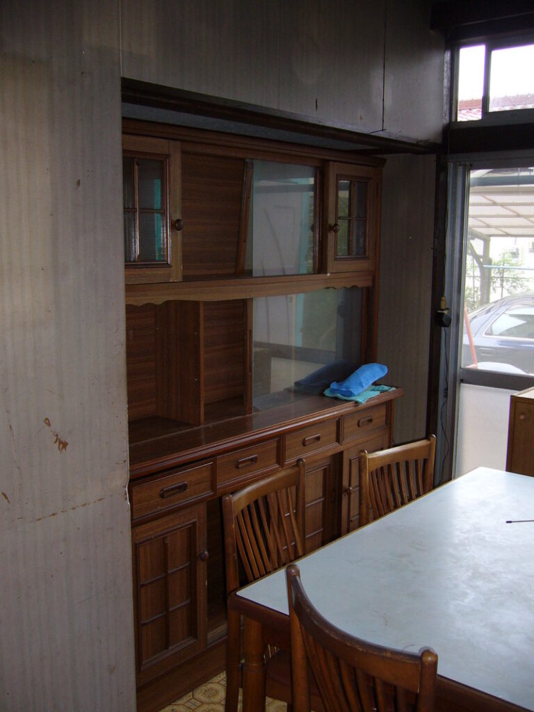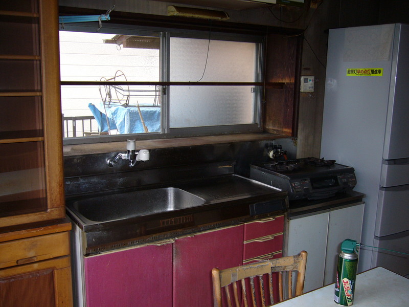 ここの食器棚と壁を撤去し6帖和室と連結・・・13帖のリビングキッチン誕生